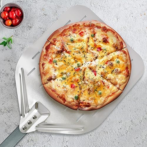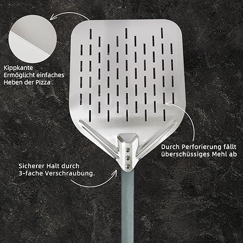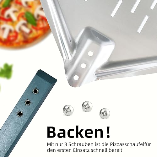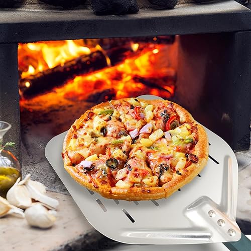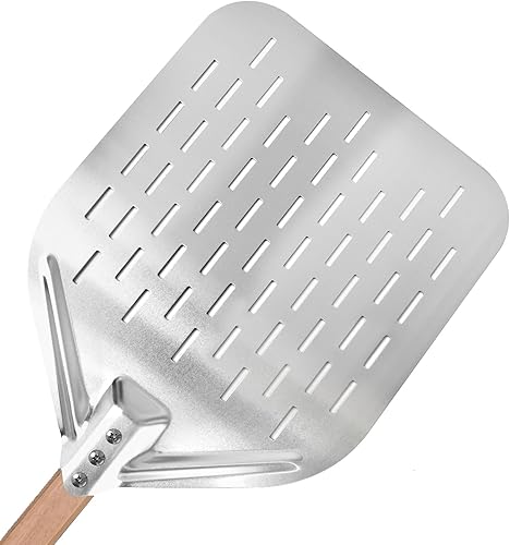 KIANGKIANG Pelle à pizza 40 x 30 cm, en aluminium, taille parfaite et design perforé pour une cuisson parfaite des pizzas (valeur du bois)
