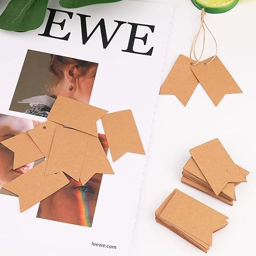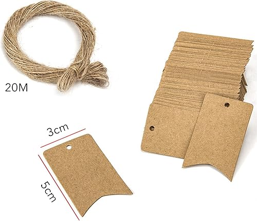Catelves Lot de 100 étiquettes cadeaux en papier kraft 5 x 3 cm avec fil de jute 20 m en papier kraft
