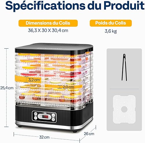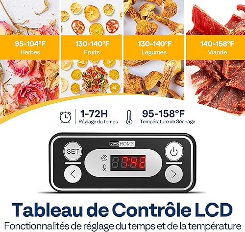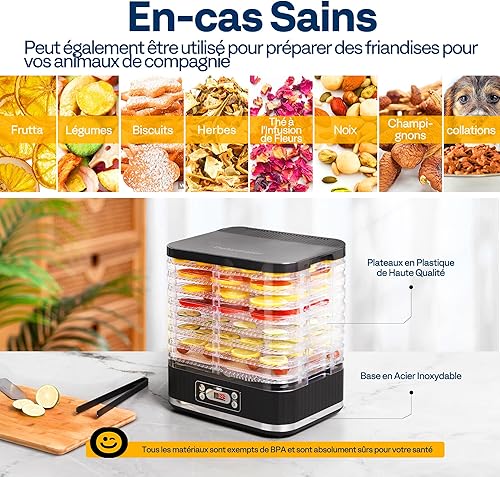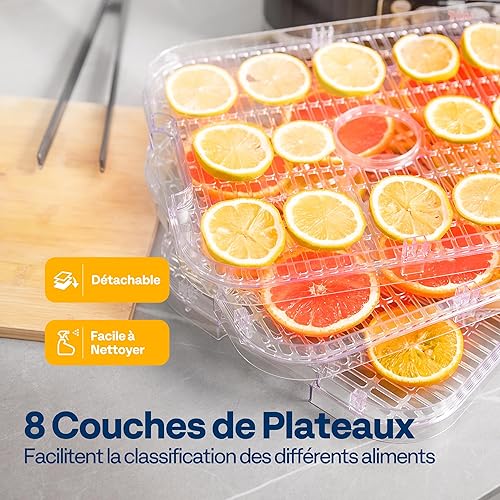 VIVOHOME Déshydrateur Alimentaire 8 compartiments 400W BPA avec réglage de la température de 35°C à 70°C incl. minuterie 72H et recette pour viande fruits et friandises pour animaux : Cuisine et Maison