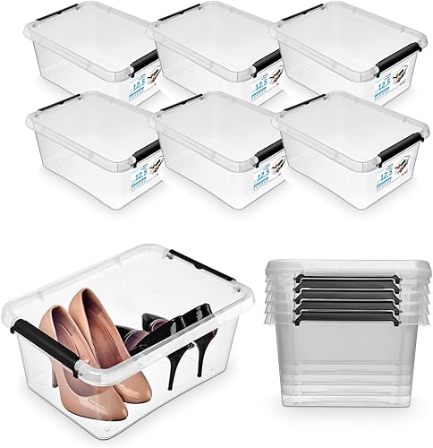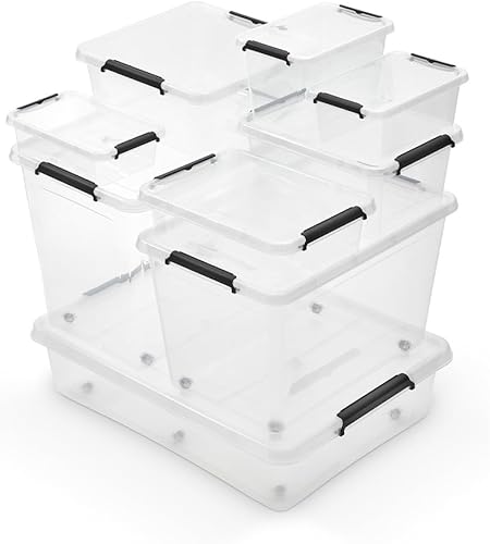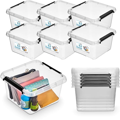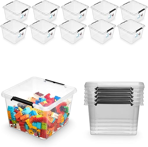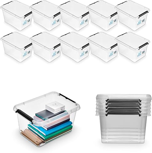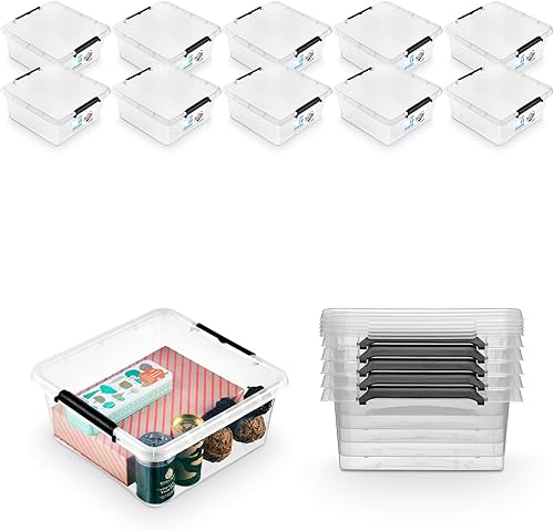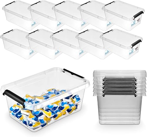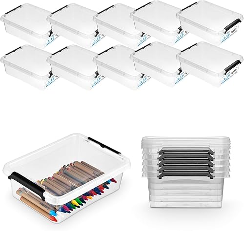 Pullmer Lot de 4 boîtes de rangement empilables en plastique avec couvercle, 4,5 l, 29 x 20 x 12 cm