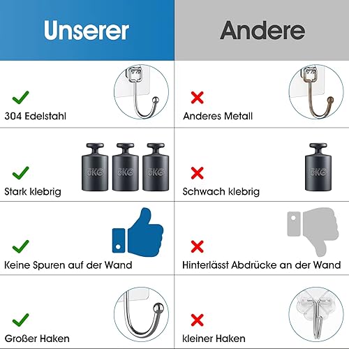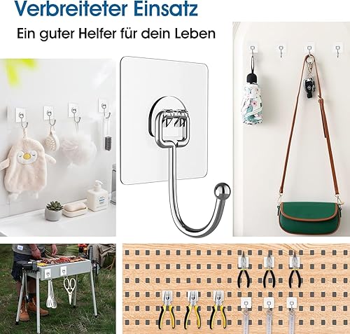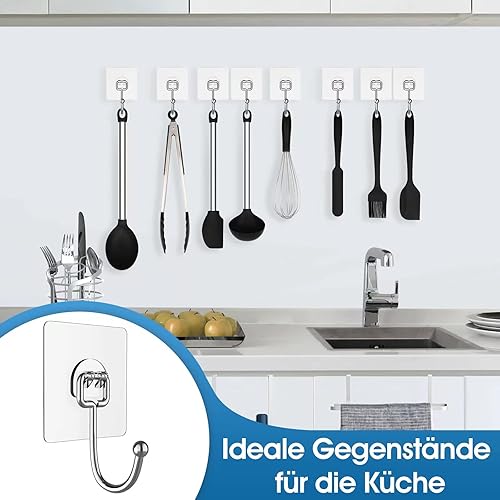 Obrjoyfly Crochet Mural Adhesif Grand 16 pièces (Max 20KG), Crochets Adhésifs sans perçage pour Grands Objets, Antirouille Crochets auto-adhésifs pour la Salle de Bain, La Cuisine et le Plafon