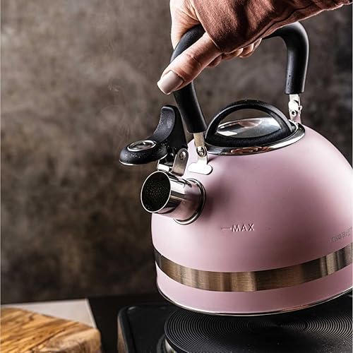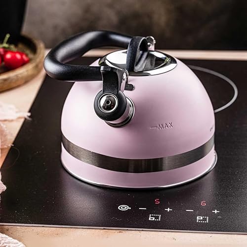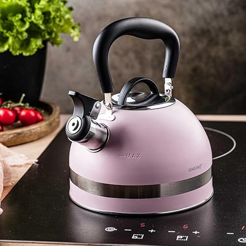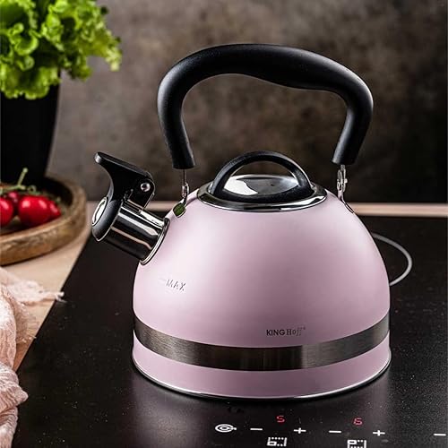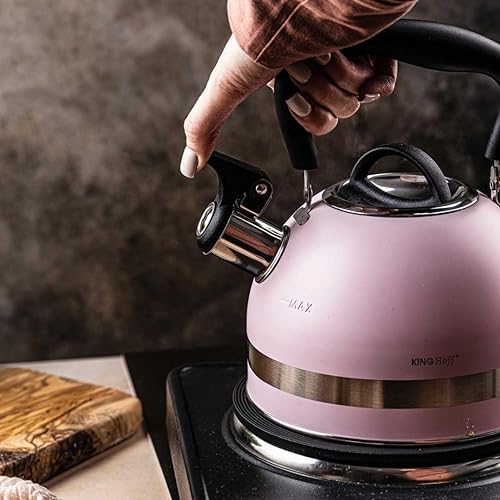 KINGHOFF KH-1856 Bouilloire sifflante en acier 1,8 l Petite taille Compatible induction Rose