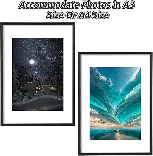 CYEER Lot de 4 cadres photo A3 noirs - 29,7 x 42 cm - Cadre DIN A3 - Cadre photo pour photos, affiches, puzzles