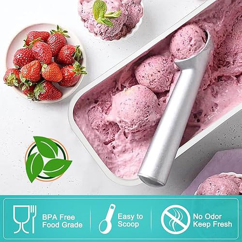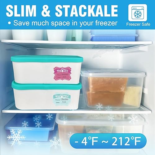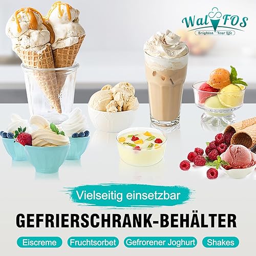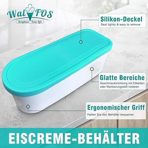 Walfos® Lot de 2 bacs à glace pour crème glacée 1,5 l, réutilisables, avec couvercle en silicone, empilables, pour yaourt