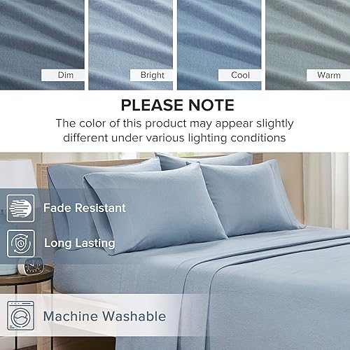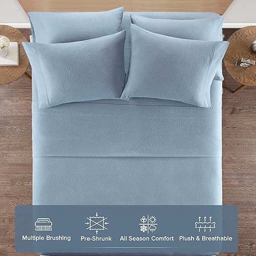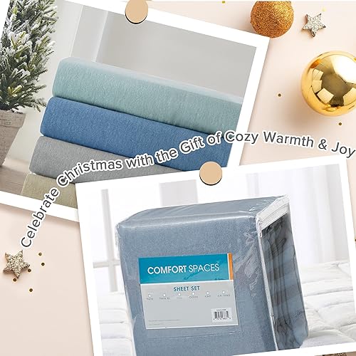 Comfort Spaces Parure de lit 4 pièces en Flanelle de Coton Respirante et Chaude avec taies d'oreiller, pour très Grand lit, Turquoise uni