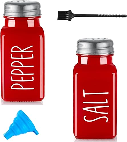 Set de 2 Salières et Poivrières en Acier Inoxydable et Verre, Salière et Poivrière de Qualité Supérieur, Pot a Sel Accessoires de Cuisine (Rouge & Rouge)