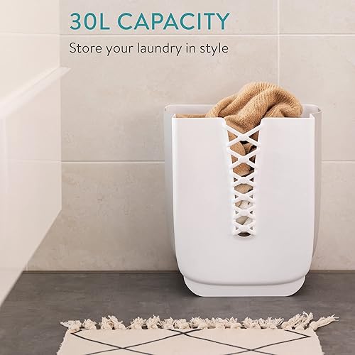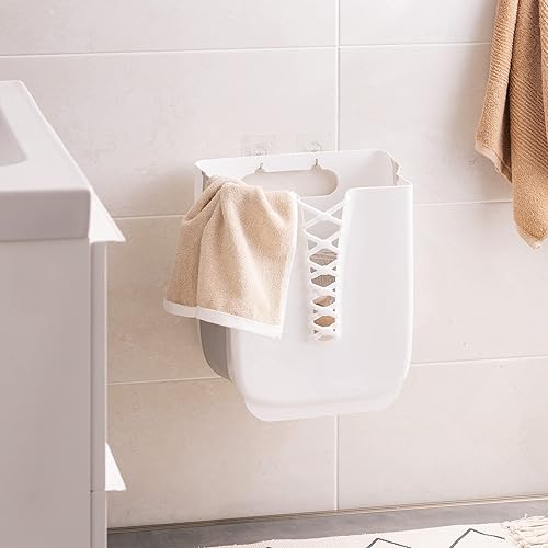 Navaris Panier Linge Pliable - Corbeille Plastique Linge Sale 30 L Fixation Murale - Panière à Linge rétractable bac Rangement Salle de Bain