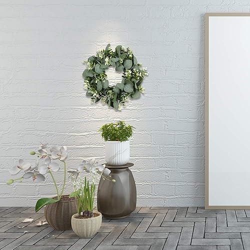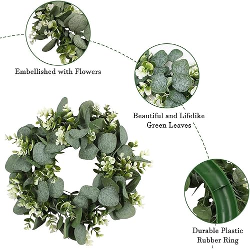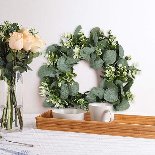 PUDSIRN Lot de 2 couronnes d'eucalyptus artificielles, 27,9 cm, couronnes de Feuilles Vertes artificielles de Ferme, couronnes d'eucalyptus Rondes pour extérieur pour Porte d'entrée, fenêtre
