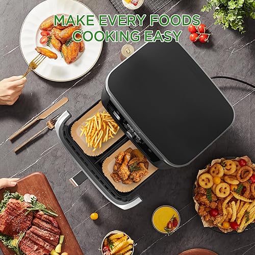 AiQInu Papier Sulfurisé pour Air Frye Ninja, 150 Pièces AF500EU 10.4L Cuisson Paper Liner, Food-Grade BPA Gratuit, Papier Parchemin Accessoires pour Friteuse Sans Huile