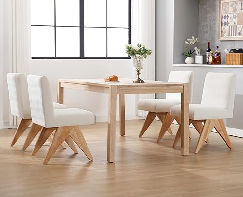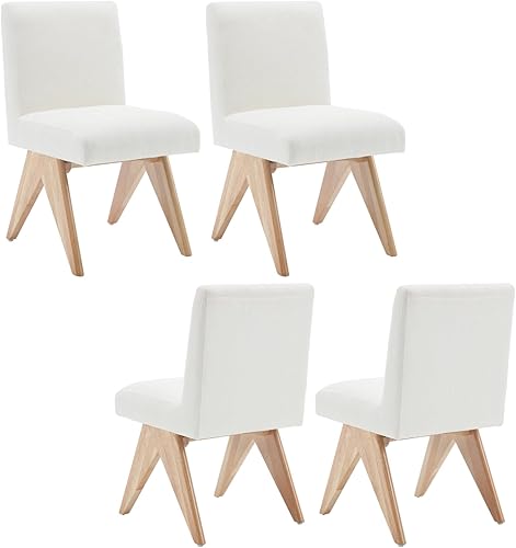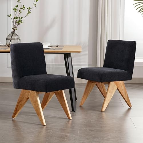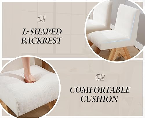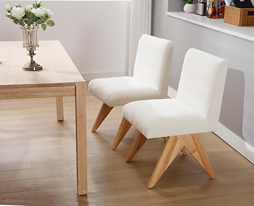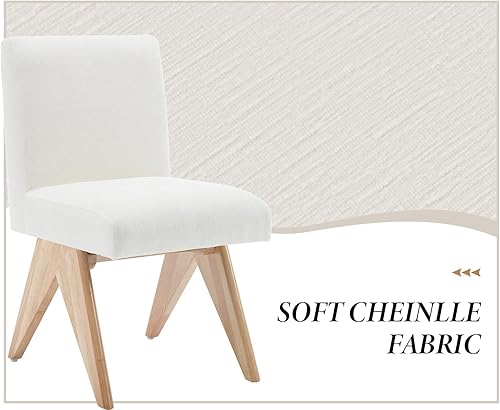 chairus Chaise de Salle à Manger Lot de 2, Chaises de Cuisine avec Pieds en Bois, Chaise de Salon en Chenille sans Accoudoirs, Beige-2