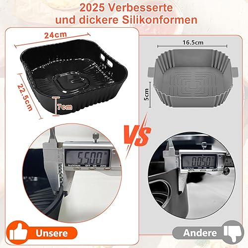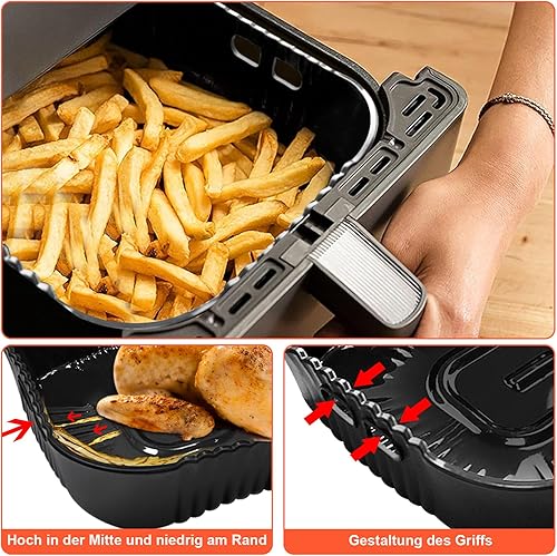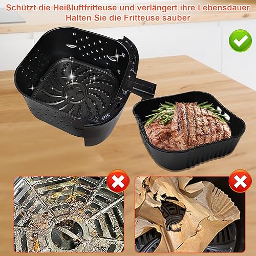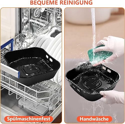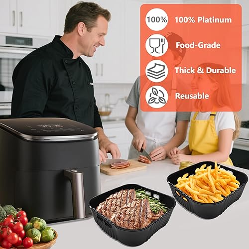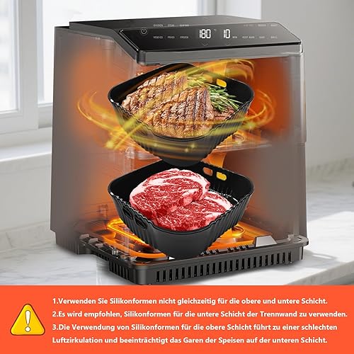 23CM Moule Silicone Air Fryer Platine, Plat Accessoires Air Fryer pour Philips Série 2000 6.2L NA230, Russell Hobbs 8L, COSORI TurboBlaze XXL 6L/6,2L/6,4L, Réutilisable Plat Silicone Airfryer, 2PCS