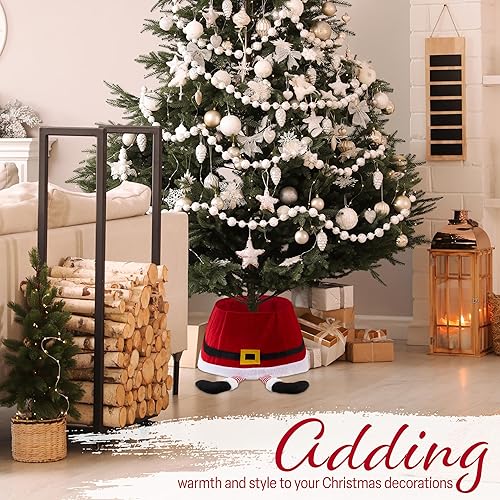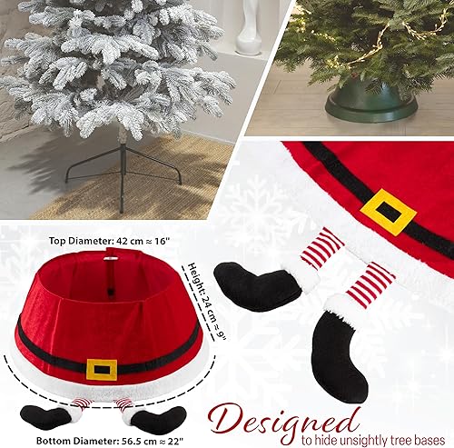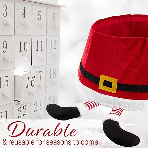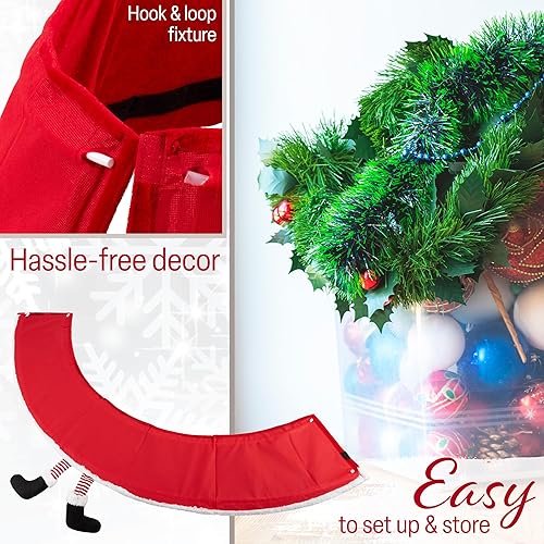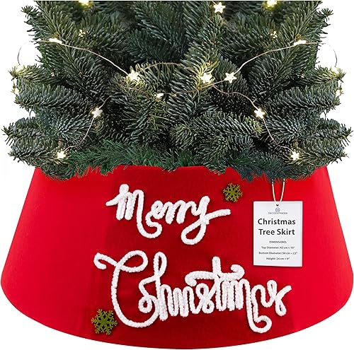 DECO EXPRESS Jupe de Sapin de Noël, Cache Pied de Sapin Père Noël Drôle, Décoration Sapin de Noel Différents Designs (Haut Joyeux Noël Rouge 42, Base 56)