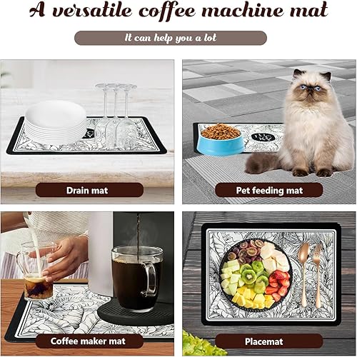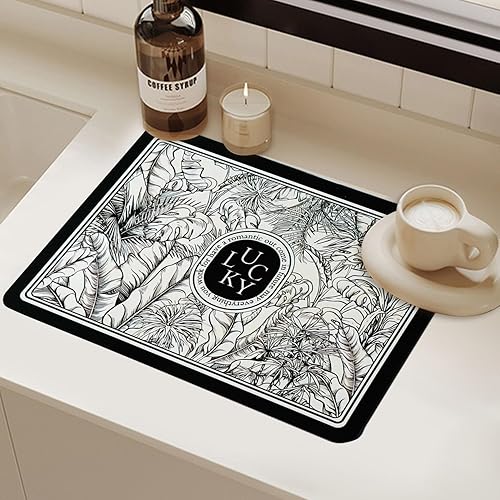xyuayamz Tapis Egouttoir Vaisselle, Egoutoire Vaisselle Cuisine, Tapis Evier Cuisine Convient aux Machines à Café, Tapis Absorbant Vaisselle,Tapis Machine a Cafe, Noir, 400x300 MM