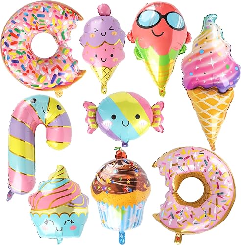 Ballons de Glace, Ballons Donut Bonbons, Grand Ballon en Aluminium Crème Glacée, Décoration Candy pour Enfants Anniversaire Été Ice Cream Tropicale Fête