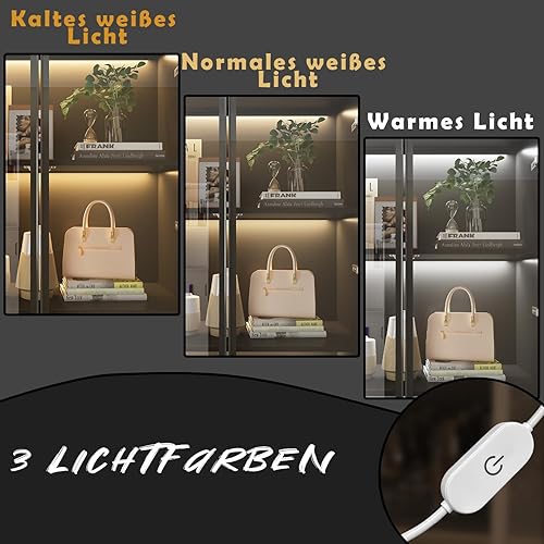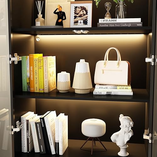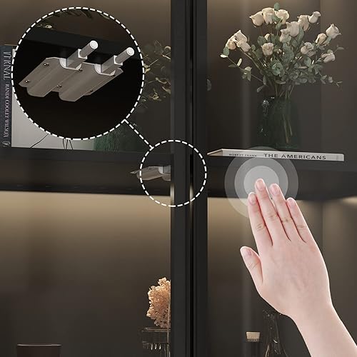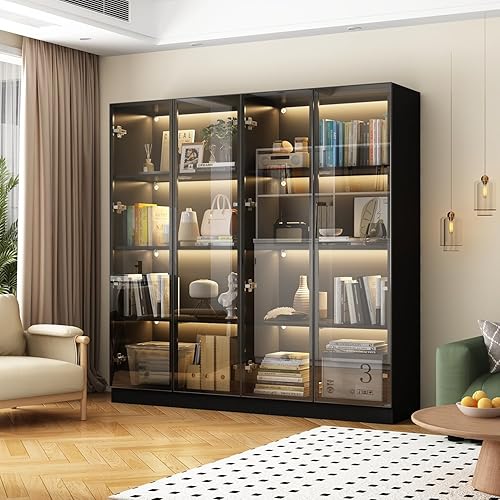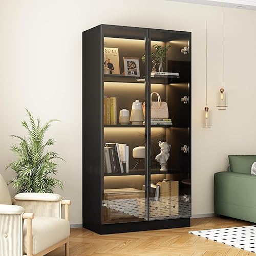 DAWNSPACES Vitrine avec LED et Portes en Verre,Vitrine avec Design Pop-up,Vitrine en Verre avec étagères à 4 Niveaux,Vitrine de Salon,Cadre en Aluminium,Noir,80x40x160cm