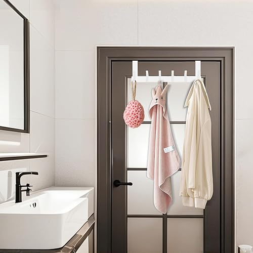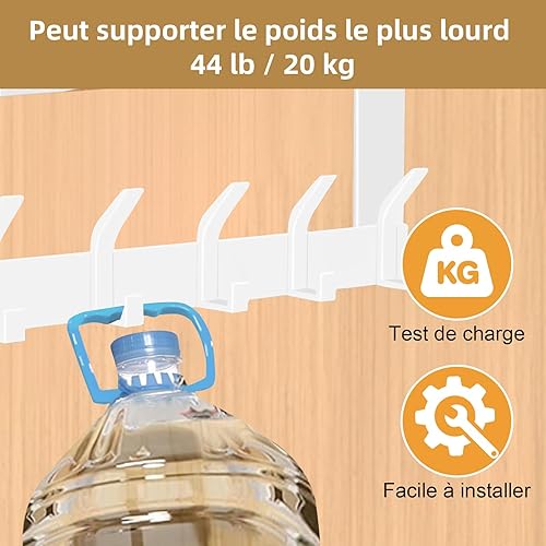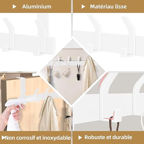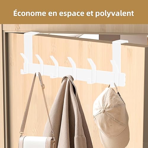 Porte manteau pour porte, Porte manteau porte sans percage pour accrocher manteaux, serviettes, vêtements, Porte manteau de porte pour économiser de l'espace, Patère porte avec 6 crochet(Blanc)