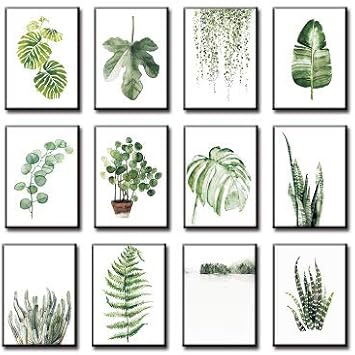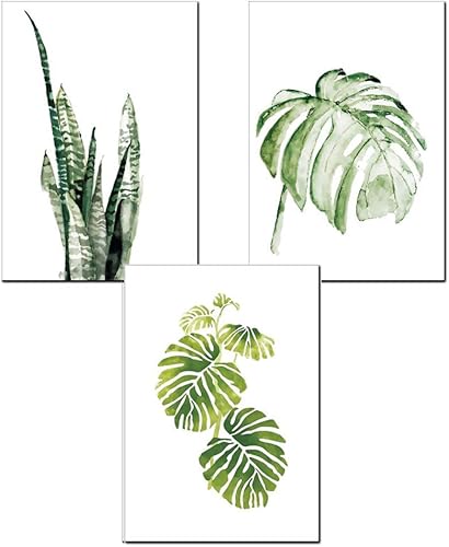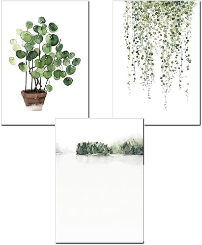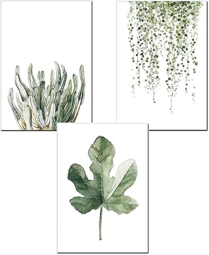 Nicole Knupfer Lot de 3 affiches vintage imprimées avec plantes vertes botaniques et feuilles - Décoration murale (D, 30 x 40 cm)