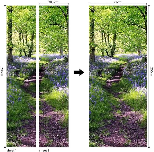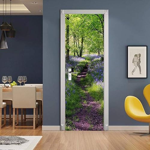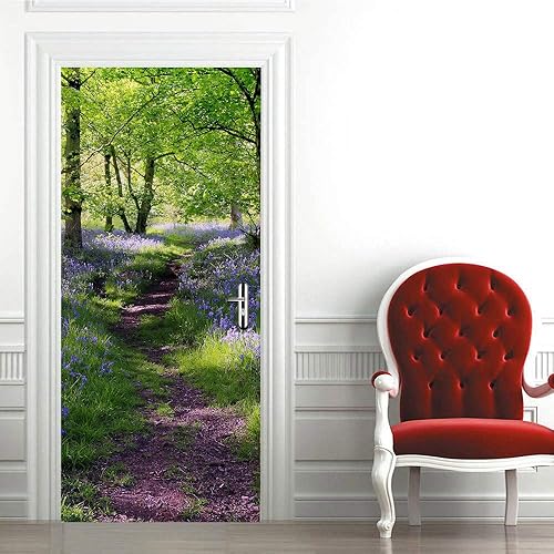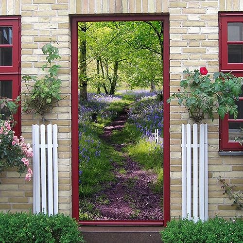 HSKABA Sticker Porte Affiche Autocollante Effet 3D,Poster Trompe l'œil pour Porte,Chemin de Lavande en Forêt,Déco Murale Qualité HD (77x200cm)
