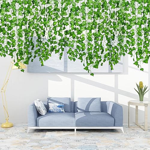 Guirlande de lierre artificiel – Guirlande de lierre artificielle | Feuilles de lierre | 2,2 m | Imperméable et résistant à la déchirure facile à utiliser pour décoration de chambre à coucher, mur de