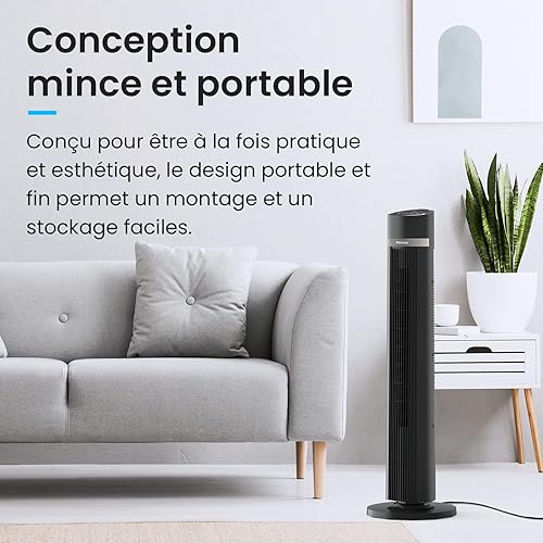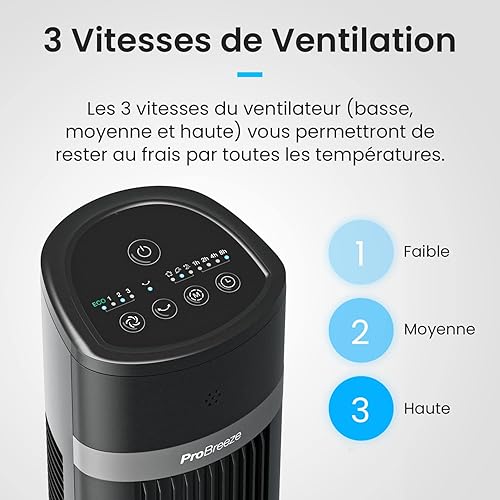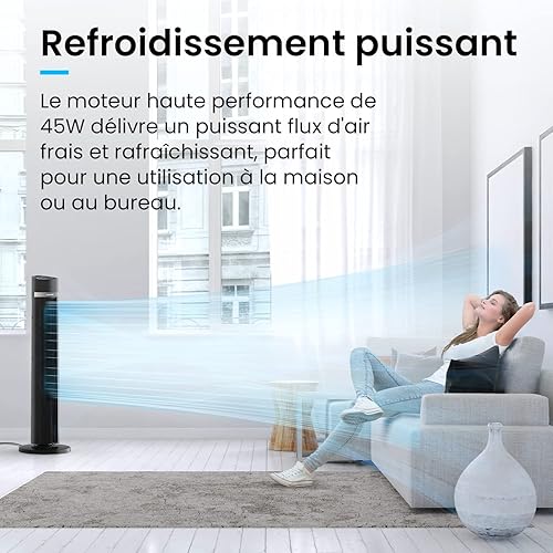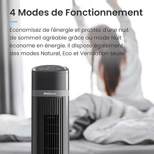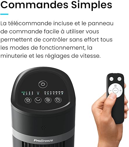 Pro Breeze Ventilateur Colonne Oscillante, Tour de 100 cm, Oscillation de 90°, Puissance de 45 Watts, 3 Vitesses, 4 Modes, Télécommande et Minuterie, Adapté pour la Maison et Le Bureau - Noir