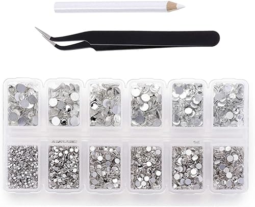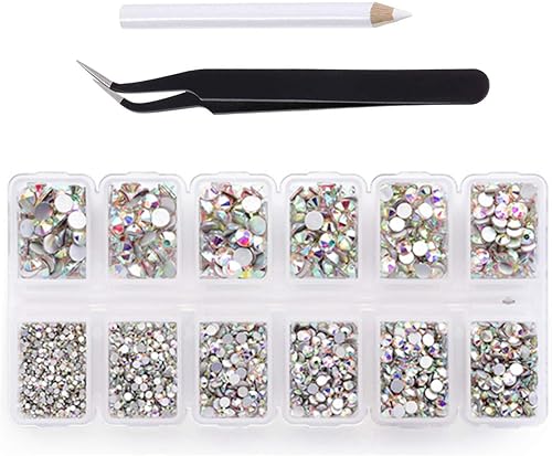 Lot de 4 200 strass à dos plat pour nail art/décorations d’ongles, autocollants en forme de cristaux ronds pour vêtements et loisirs créatifs, de 1,5mm à 4,8mm - 6 tailles Cristal AB