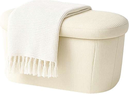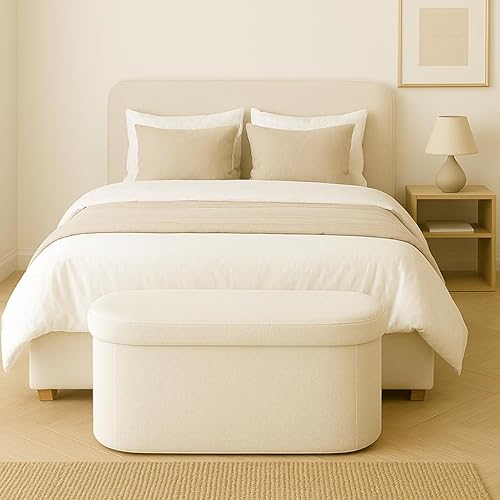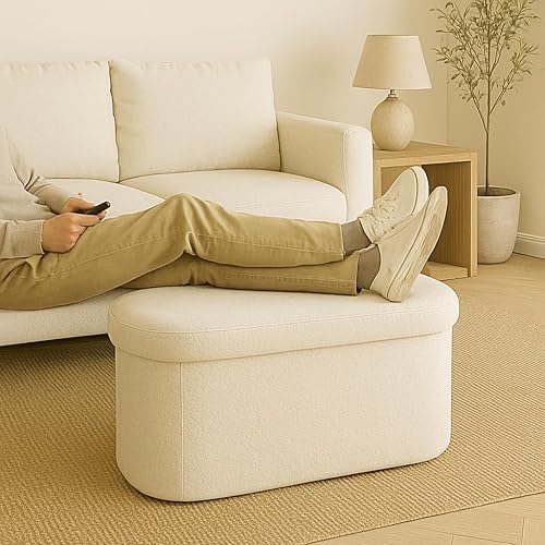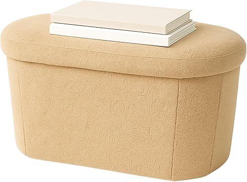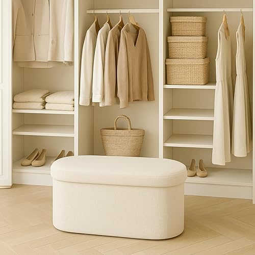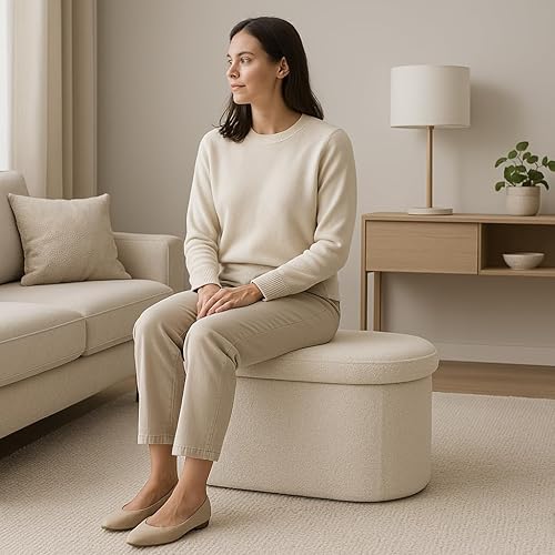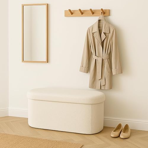 LAMBY Home Banc de Rangement - Pouf de Rangement Bouclette, Coffre de Rangement pour Chambre, décoration de Chambre, Repose-Pieds Salon avec Assise, Meuble à Chaussures, Pouf de Salon ou lit