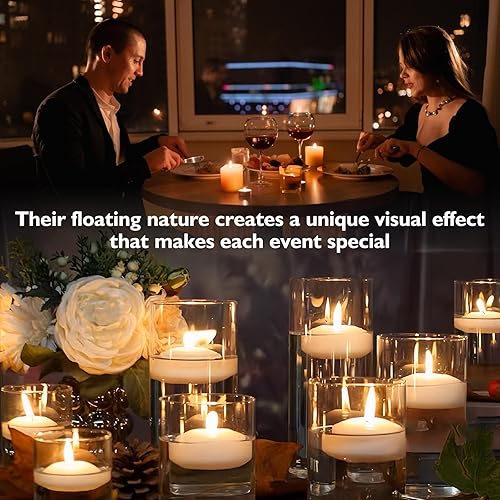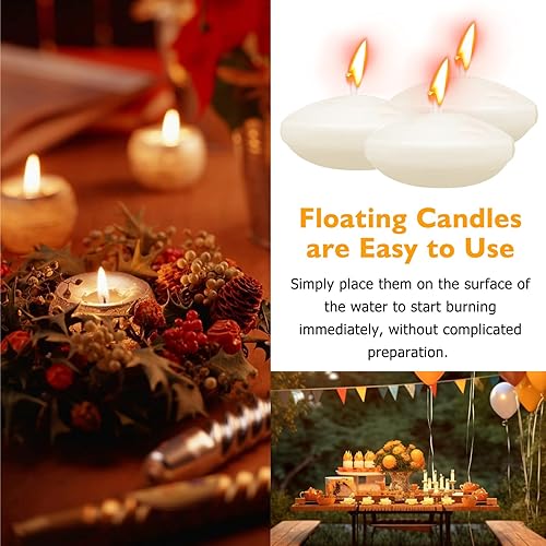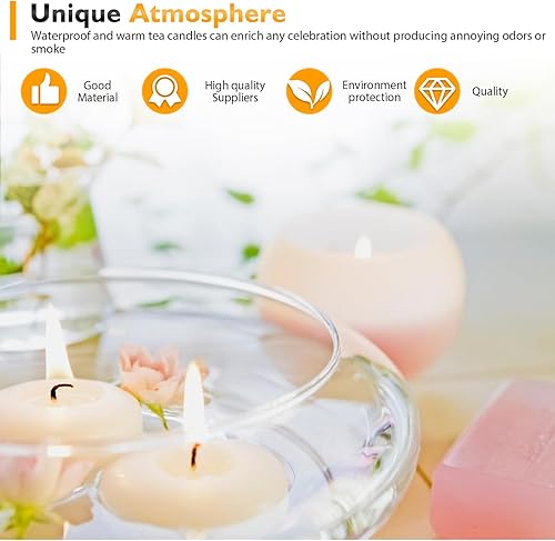 Lot de 50 bougies flottantes non parfumées : WANDGU Bougies flottantes, bougies chauffe-plat, bougies flottantes pour la Saint-Valentin, Noël, mariage, dîner, blanc chaud