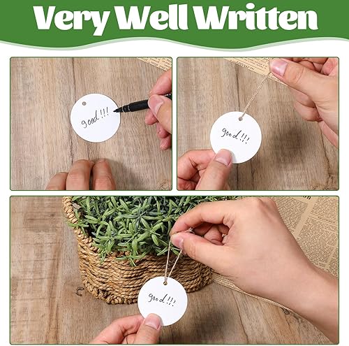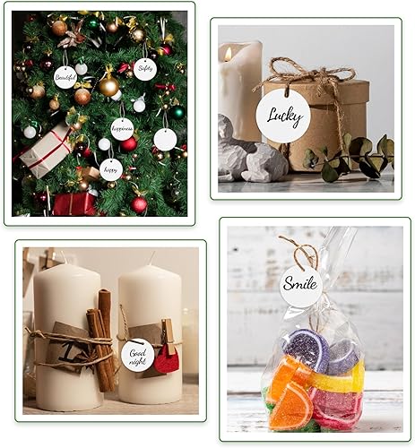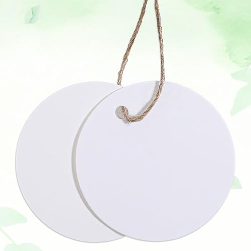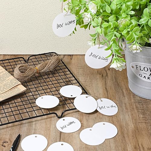 Larrel Lot de 100 étiquettes cadeaux rondes blanches de 5 cm avec corde de chanvre de 20 m de corde de chanvre, étiquettes cadeaux, étiquettes pour étiquetage pour fête, artisanat, mariage, Noël