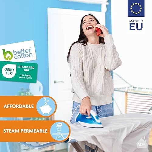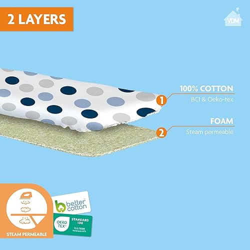 Housse de Table à Repasser Laundryspecialist Classic – 2 Couches et équipée de Mousse 3MM – Taille XL pour Une Largeur de 42 à 52 cm et Une Longueur de 130 à 138 cm