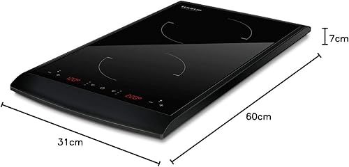 Taurus Darkfire Domino - Plaque à induction numérique avec 2 feux, diamètre jusqu'à 17,5 cm, 10 niveaux de puissance, température réglable, fonction minuterie, design ultra fin, 2900 W, 600 x 310 x 71