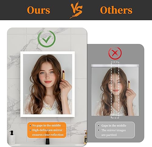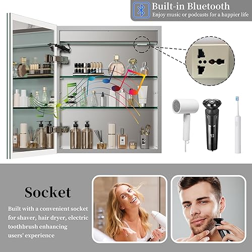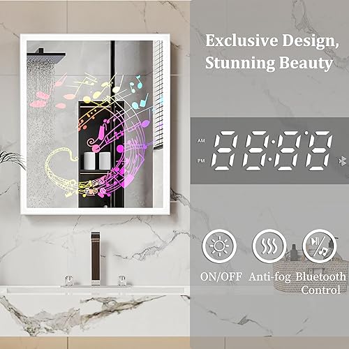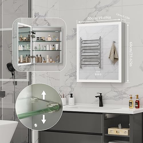 LUVODI Armoire Salle de Bain avec Horloge et Bluetooth: 60x50cm Miroir de Toilette avec Éclairage et Prise Support pour Sèche-Cheveux et Rasoir Meuble Miroir avec Étagère Réglable Pharmacie Anti Buée
