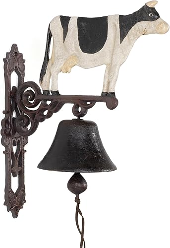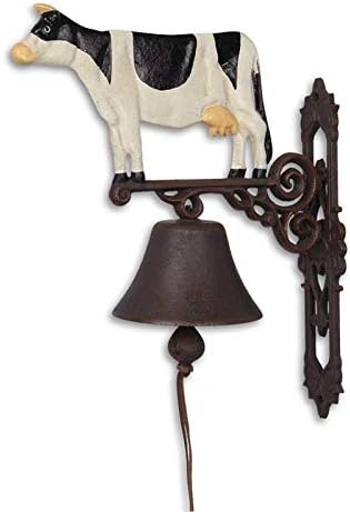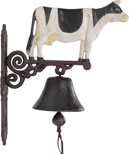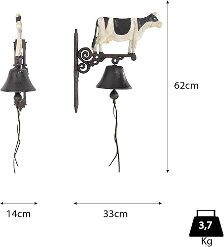 Moritz Cloche murale en fonte - Motif vache tachetée - Noir et blanc - Hauteur : 38,5 cm - Style antique - Marron