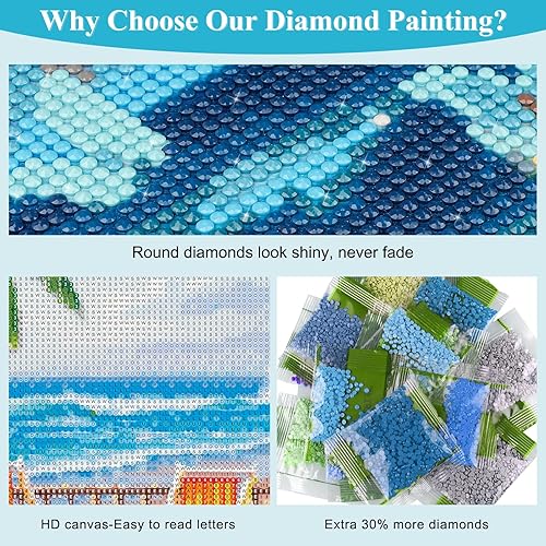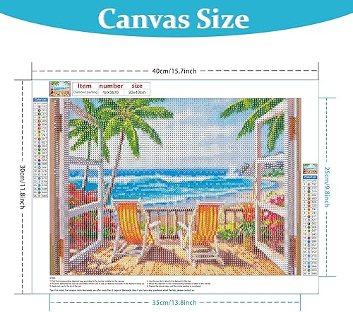 DAERLE Peinture Diamant Adulte, Plage de sable Diamond Painting 5D Complet, Diamant Paysage Kits, Mer Diamant Strass Point de Croix Cristal Painting pour Murale Décoration 40x30cm
