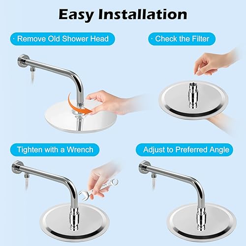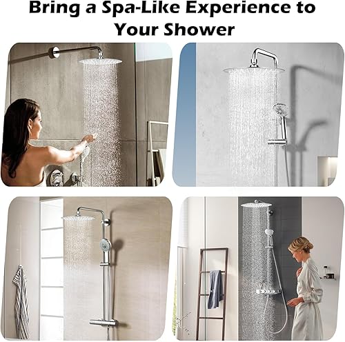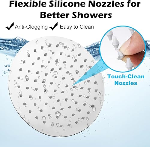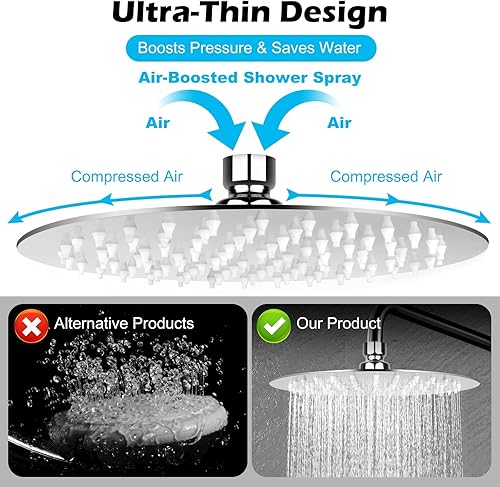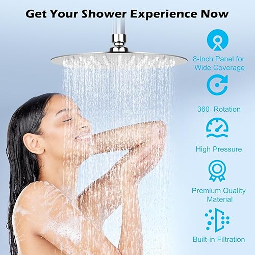Tête de Douche 20cm Acier Inoxydable 304, Pommeau de Douche Rond 8 Pouces, Rotatif 360° Shower Head, Haute Pression, Economie d'Eau, Facile à Installer et à Nettoyer, Effet Pluie Anti-Calcaire