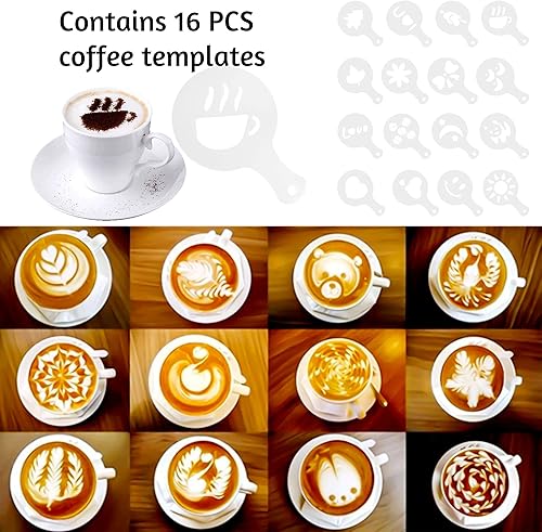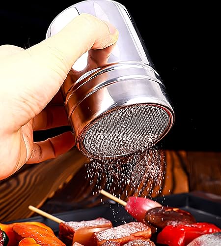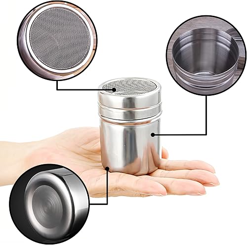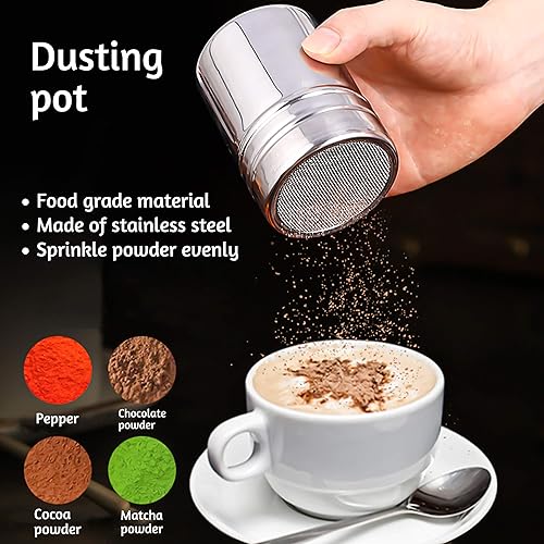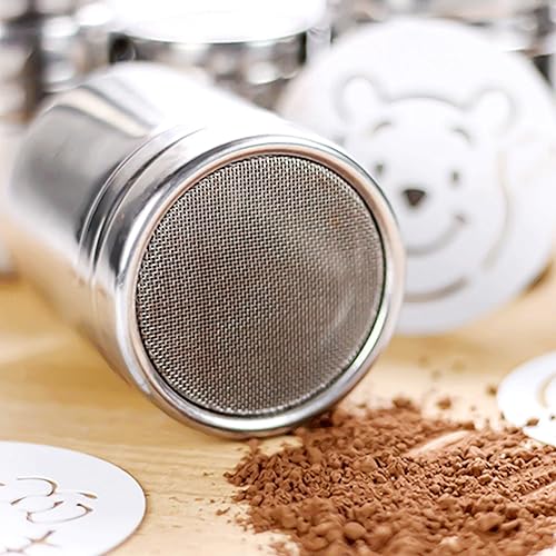 INHEMING Lot de 2 Saupoudreur en Acier Inoxydable, Tamis pour Café,Cacao,Sucre Glace,avec 16 Pochoirs à Cafe