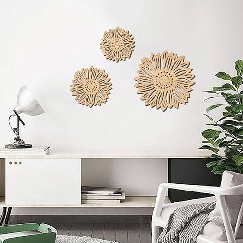 CREATCABIN 3 décoration Murale en Bois Géométrique en Bois-Décoration Murale Suspendre-Sculpture Montagnes Modernes-Décoration en Bois Découpée au Laser-pour Maison Chambre Coucher-28x28 c-Café