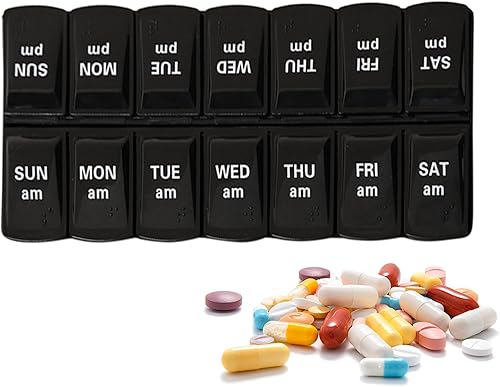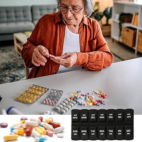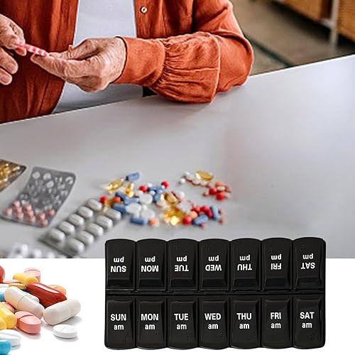 Boîte de stockage de médicaments - boîte de médecine portable | Polyvalent 7 jours 2 fois par jour AM/PM Planificateur de médicaments, 7 compartiments Dispensateur de pilules, étui de pilule pour la