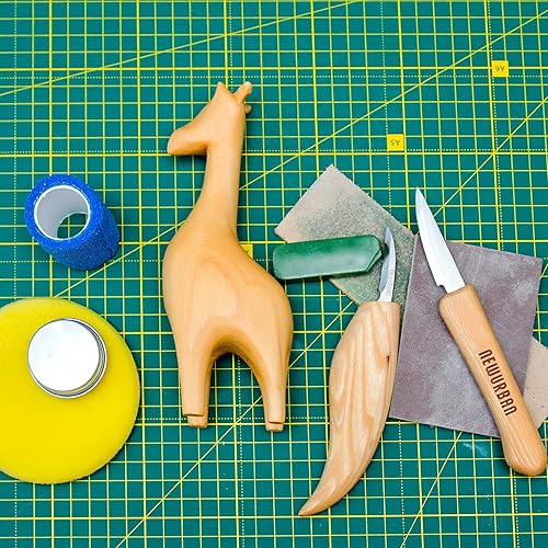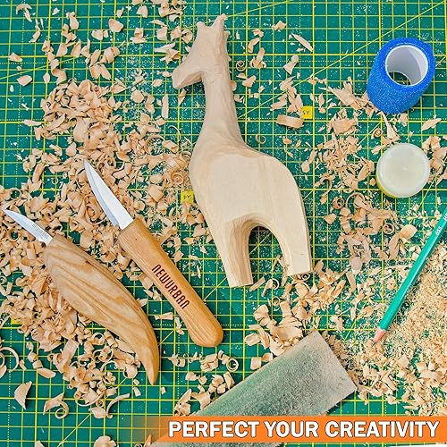 Kit de Sculpture Sur Bois Pour Débutants - Kit de Sculpture Avec Tilleul Girafe - Kit de Travail du Bois Pour Enfants, Adultes - Couteau de Sculpture Sur Bois En Acier Inoxydable Avec Manche En Bois