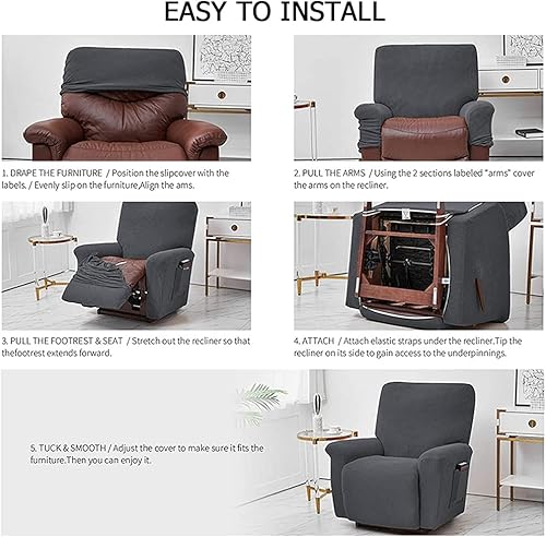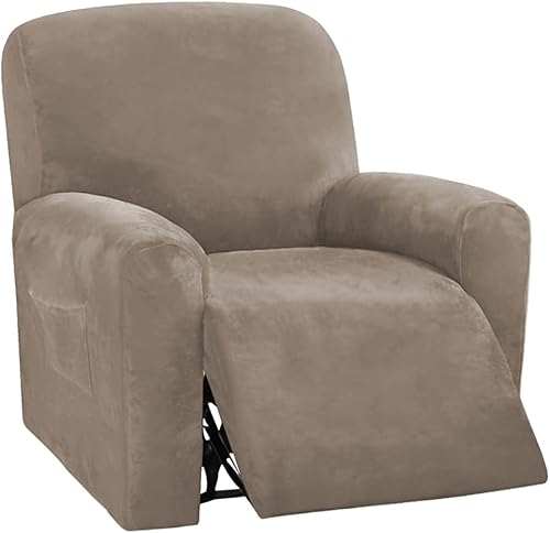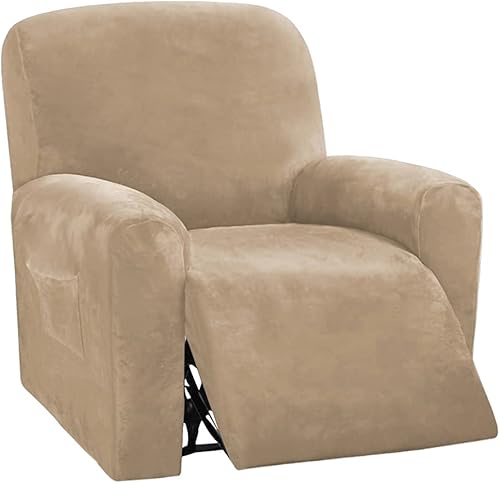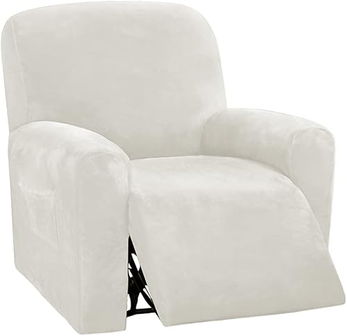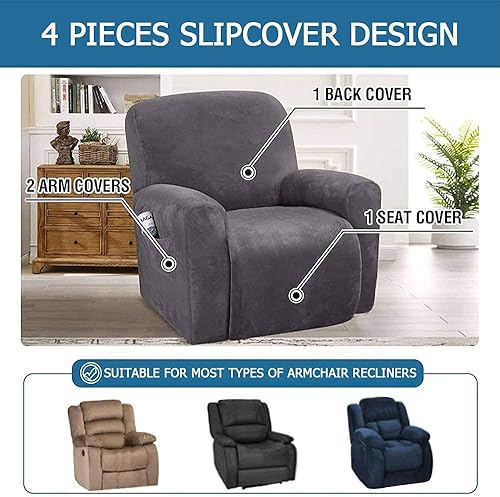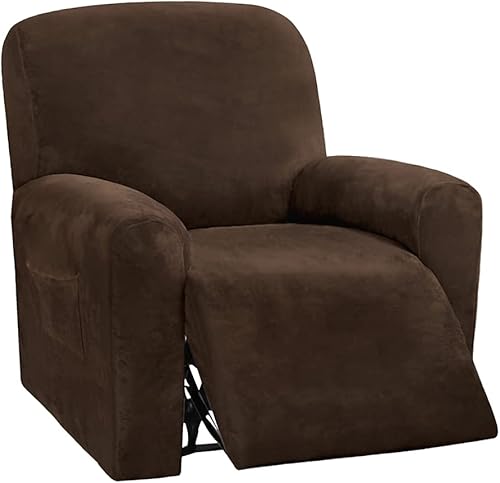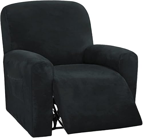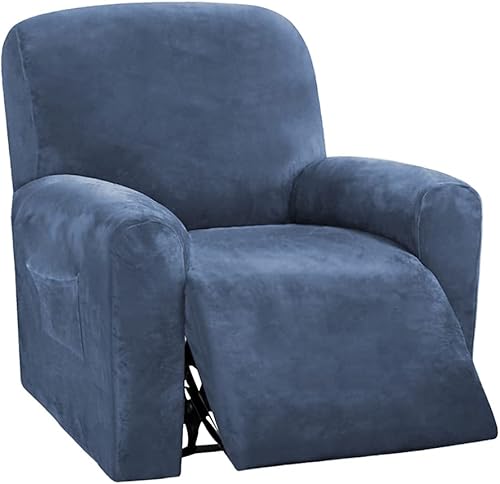 Highdi Housse de Fauteuil Relax Velours Extensible, 4 Pièce Housse de Canapé Couleur Unie Antidérapante avec Poche Latérale, Protege de Meubles Lavable pour 1 Places Fauteuil Inclinable (Bleu Royal)