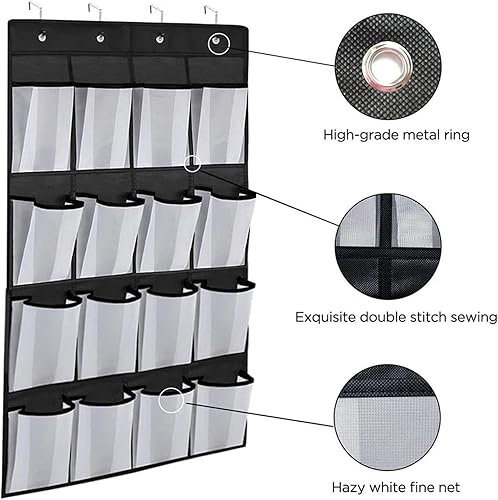 Organisateur De Chaussures Sur-porte - Organisateur De Chaussures Suspendu, Porte-chaussures À La Porte | 16 Grands À Chaussures De Poche Sur La Porte Avec 4 Crochets Forts En Métal, Pochette De Range