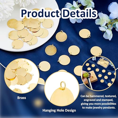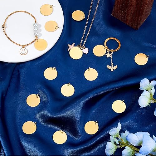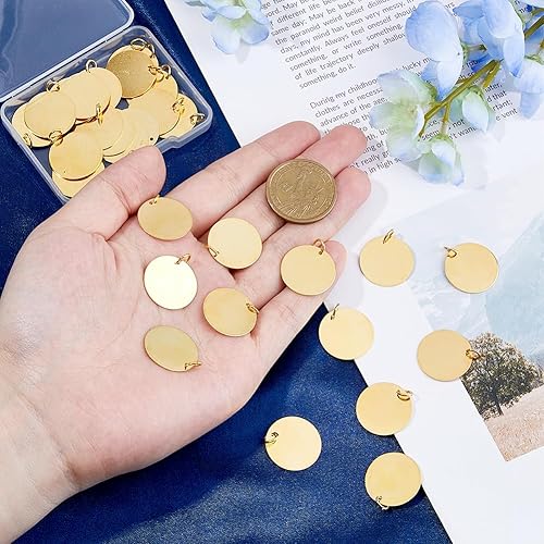 SUPERFINDINGS 30Pcs Pendentif Vierge en Laiton de 20mm Étiquettes D'Estampage Vierges Rondes de 20mm Estampage Doré Étiquettes Vierges Rondes Plates avec Anneau pour Boucle D'Oreille Porte Clés