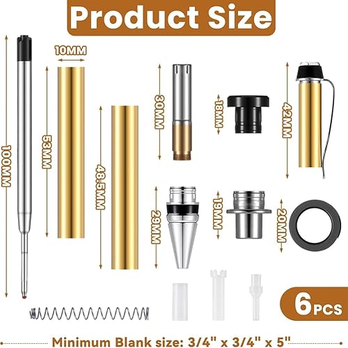 Suoumwa Ensemble de 6 Pièces pour Tourner le Bois avec Recharges. Kit de Stylo Rotatif pour Tourner le Bois, en Vrac, pour L'Approvisionnement en Tournage sur Tour pour la Fabrication de Stylos.