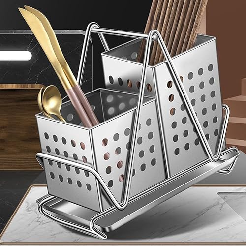 Porte-couverts en acier inoxydable avec système d'évacuation efficace (avec plateau)