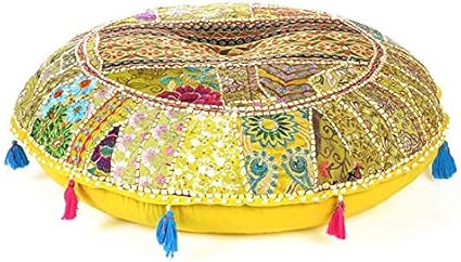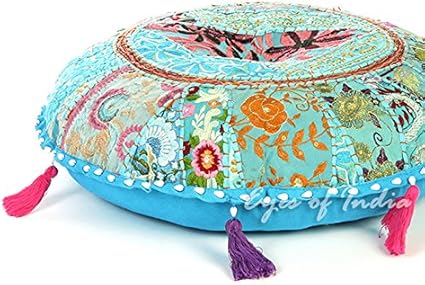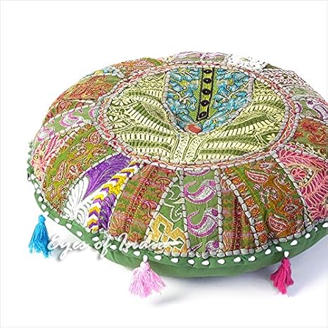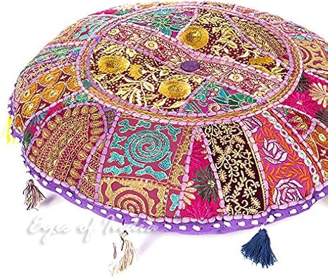 Eyes of India Housse de coussin ronde en patchwork pour méditation - Décoration colorée - Style indien bohème chic - Fait à la main - Marron foncé - 43,2 x 43,2 cm