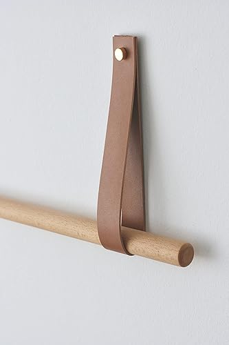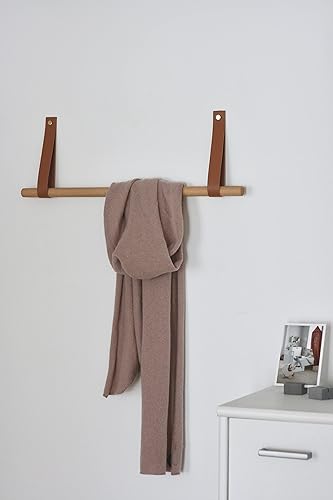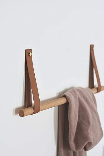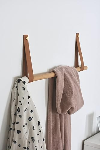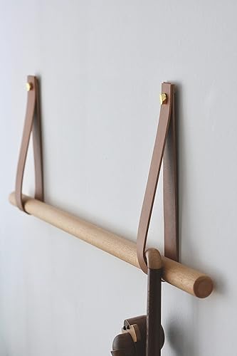 anaan Bridge Tringle à Vêtements Murale avec Cuir Porte Manteau Cintre Mural Hanger en Bois Rangement pour Serviettes Porte Ustensiles Cuisine Murale moderne Désign 60cm