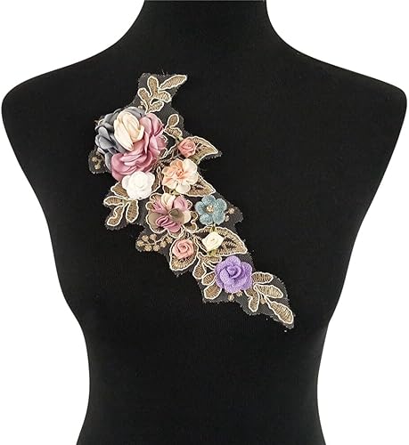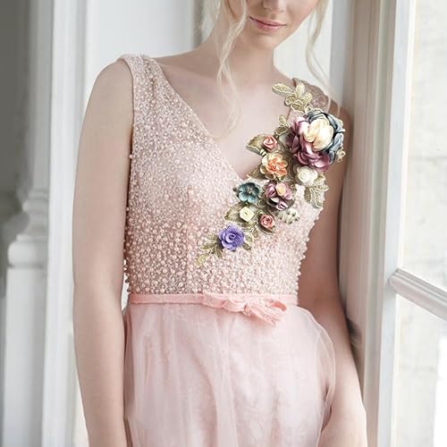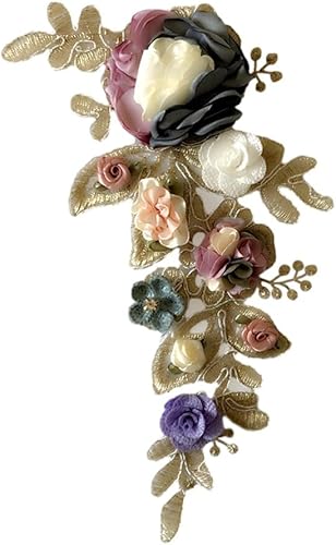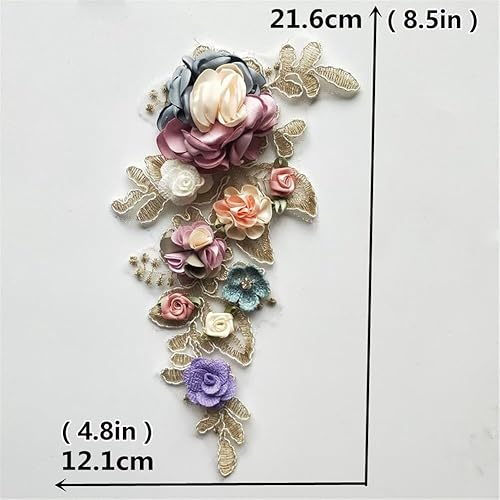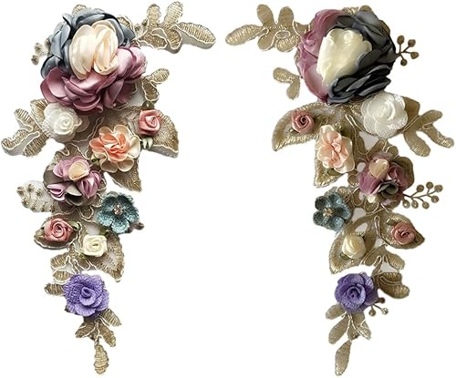 2pcs Patch en Dentelle Broderie Applique Fleur à Coudre 3D Florale Perlé Patchs Applique en Dentelle Patchs Brodés Couture Garnitures pour DIY Robe de Mariée Patch Vêtements Accessoires