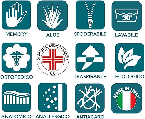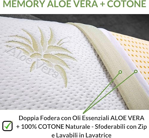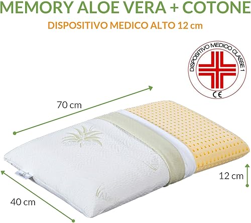 EVERGREENWEB - Oreiller de lit 40x70 Haut 12 cm, Oreiller en Mémoire de Forme de Haute Qualité, Hypoallergénique,Double Housse Amovible Aloe Vera et Coton, Oreiller Relaxant pour Douleurs Cervicales