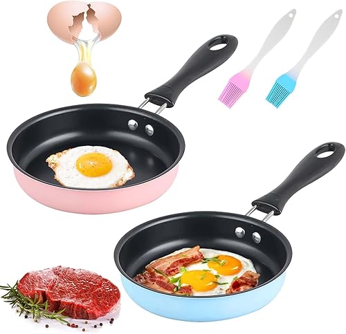 GOMETY Lot de 2 mini poêles à frire de 12 cm - Mini poêle à œufs au plat - Anti-adhésive - Résistantes à la chaleur - Portable - En acier inoxydable - Pour le camping, la cuisson, les œufs, le bacon