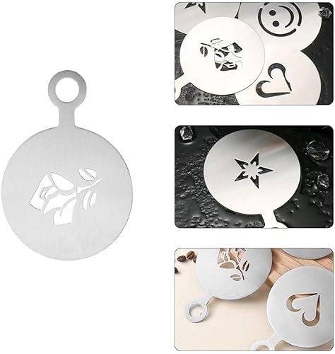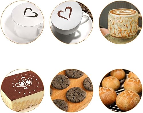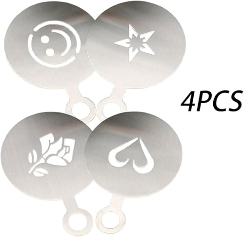Pamtns 4 Pièces Pochoir Cafe Pochoirs pour Peinture Murale Pochoirs à Café en Acier Inoxydable Pochoir à Gâteau Pochoir Cappuccino Latte Art Moule Pochoir Barista Cuisson Outils de Décoratio