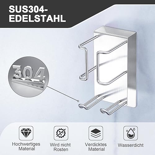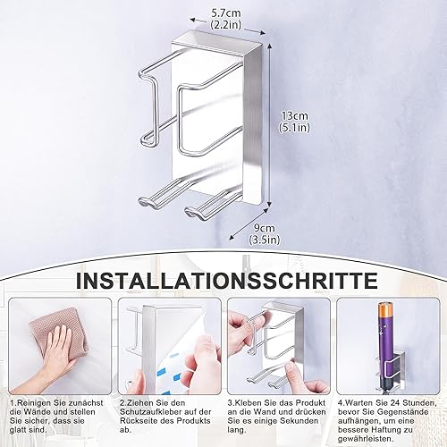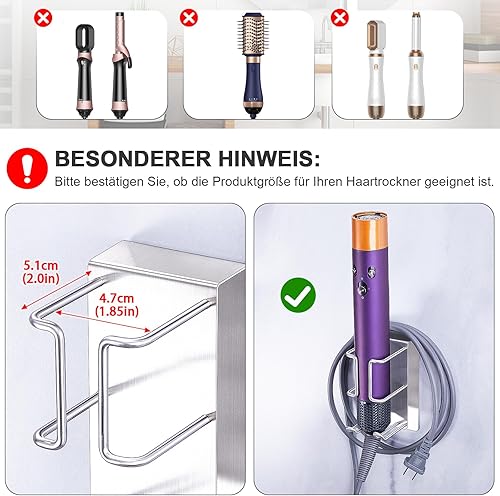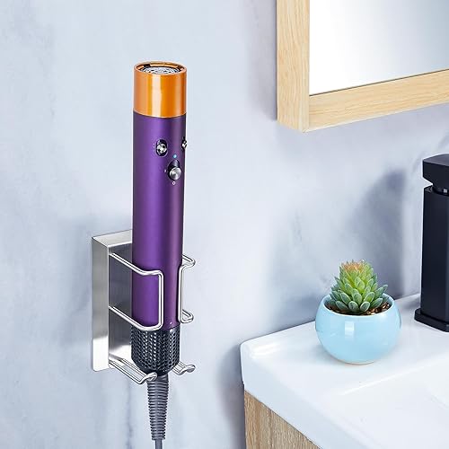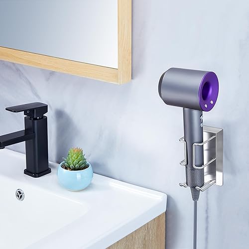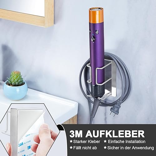 WAYASI Salle de Bains Support seche cheveux, Porte seche cheveux, Porte seche lisseur en acier inoxydable, Porte seche cheveux sans percage, Support Mural pour Fer à Friser et Fer à Lisser